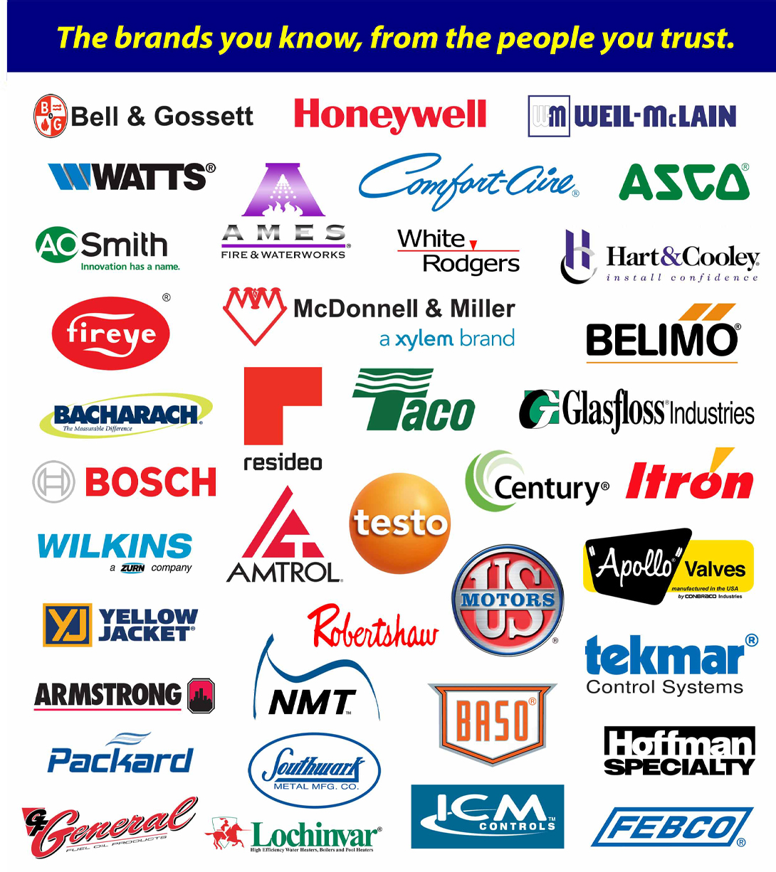Honeywell, Weil-McLain, Watts, Maxitrol, Itron, Bosch, Comfort-Aire, White Rodgers, Wilkins, Apollo, Conbraco, Mid-West Instrument, Johnson Controls, Flomatic, Bell & Gossett, Taco, Febco, Ames, Armstrong, McDonnell & Miller and Fireye are just a few of the brands we stock every day at Winstel Controls.